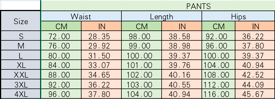 XL | 42 | 10 | 98-102 | 38.6-40.2 | 78-82 | 30.7-32.3 | 104-108 | 40.9-42.5 | 64-67 |